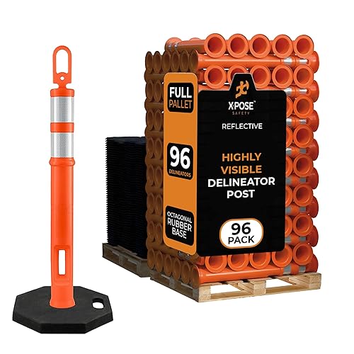 Xpose Safety 45' Blue Delineator Posts with Base, 3-Pack – Ring Top, 10' Reflective Band, 13 lb Rubber Base – Traffic, Parking, Construction, Events