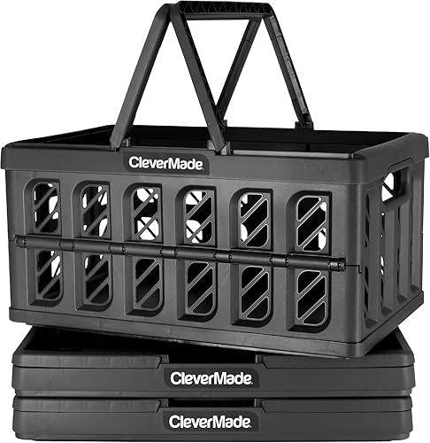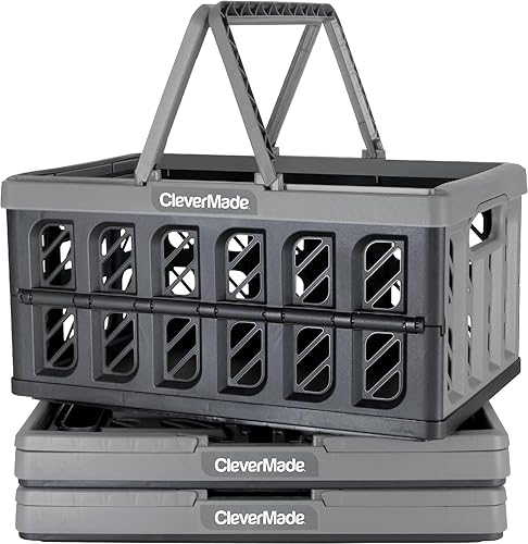 CleverMade Collapsible Shopping Basket, Ocean, 3PK - 24L (6 Gal) Reusable Plastic Grocery Shopping Baskets, Holds 25lbs Per Basket - Small Foldable Storage Crates with Handles