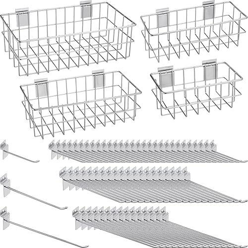 94 Pcs Slatwall Accessory 4 Metal Slatwall Baskets 90 Slatwall Hooks 4'' 6'' 8'' Slat Wall Hooks Hanging Storage Baskets for Shops Rooms Garage Storage Display Slatwall Panels(Black)