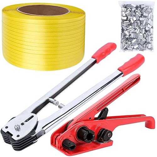 MYFAMIREA Heavy Duty Banding Strapping Kit with Tensioner Tool, 1/2' x 3500FT Polypropylene Plastic Packaging Strapping, 300 Metal Seals, Sealer Tool for Pallets, Logistics, Warehouse (Red)