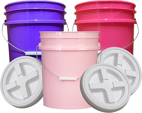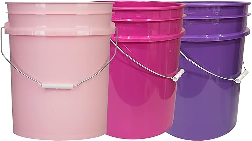 House Naturals 5 Gallon Food Grade Plastic Bucket, 3 Colors, BPA Free, Made in USA (Pack of 3) Buckets only, no lids