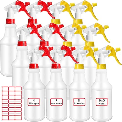 Gerrii 12 Pcs Plastic Spray Bottles with Adjustable Nozzle and Label for Cleaning 24 oz Anti Leak HDPE Spraying Bottles Empty Water Squirt Bottle (Red)