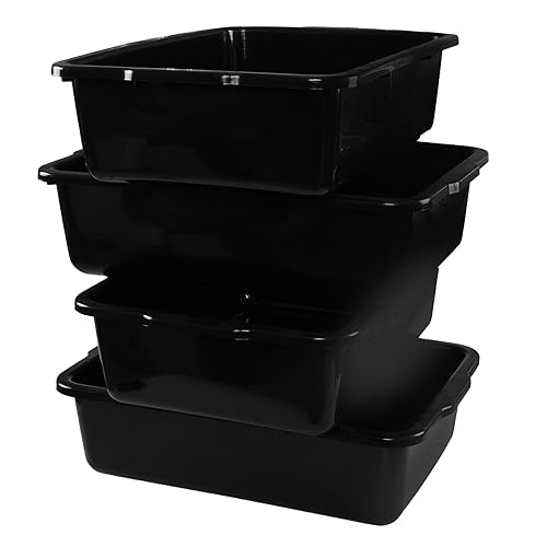 4-Pack 32 Liter Large Black Bus Tubs, Commercial Plastic Bus Trays